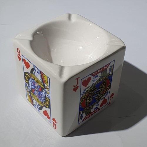 - Cinzeiro de porcelana quadrado com naipes de Copas.