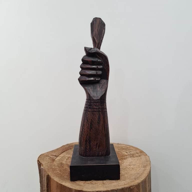 - Imagem em madeira talhada, aproximadamente 30cm de altura.