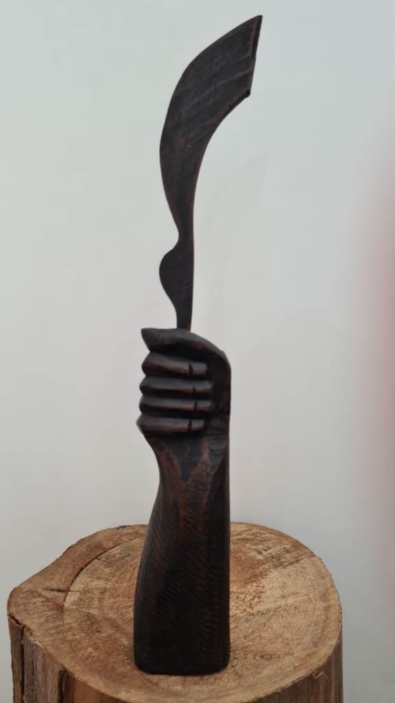 - Imagem em madeira talhada, aproximadamente 40cm de altura.