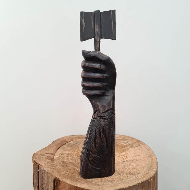 - Imagem em madeira talhada, aproximadamente 40cm de altura.
