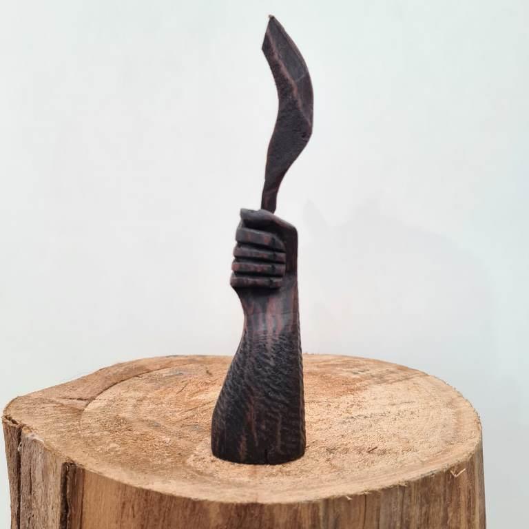 - Imagem em madeira talhada, aproximadamente 19cm de altura.