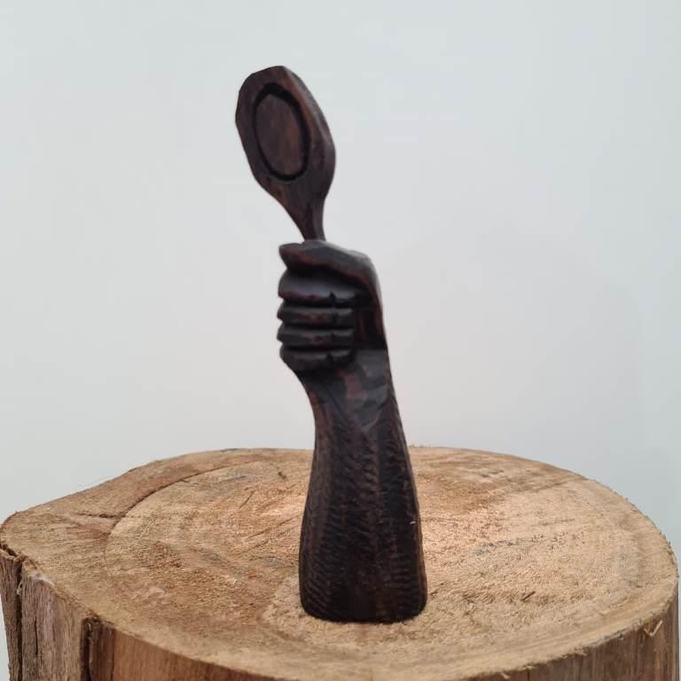 - Imagem em madeira talhada, aproximadamente 19cm de altura.