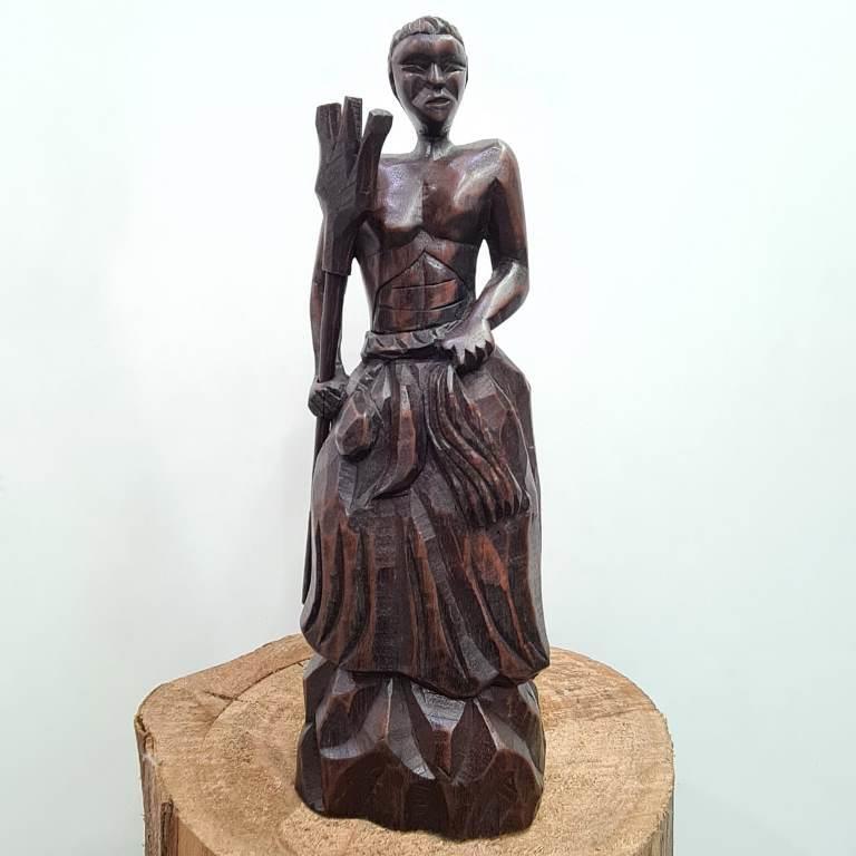 - Imagem em madeira talhada, aproximadamente 32cm de altura.