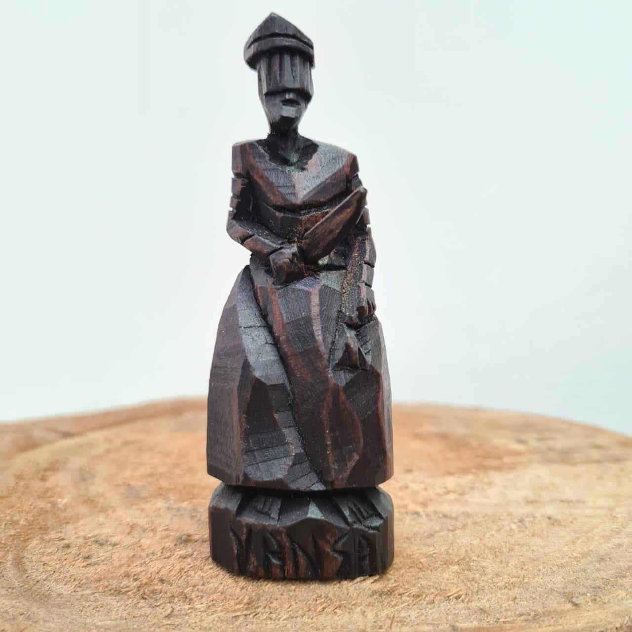 - Imagem em madeira talhada, aproximadamente 12cm de altura.