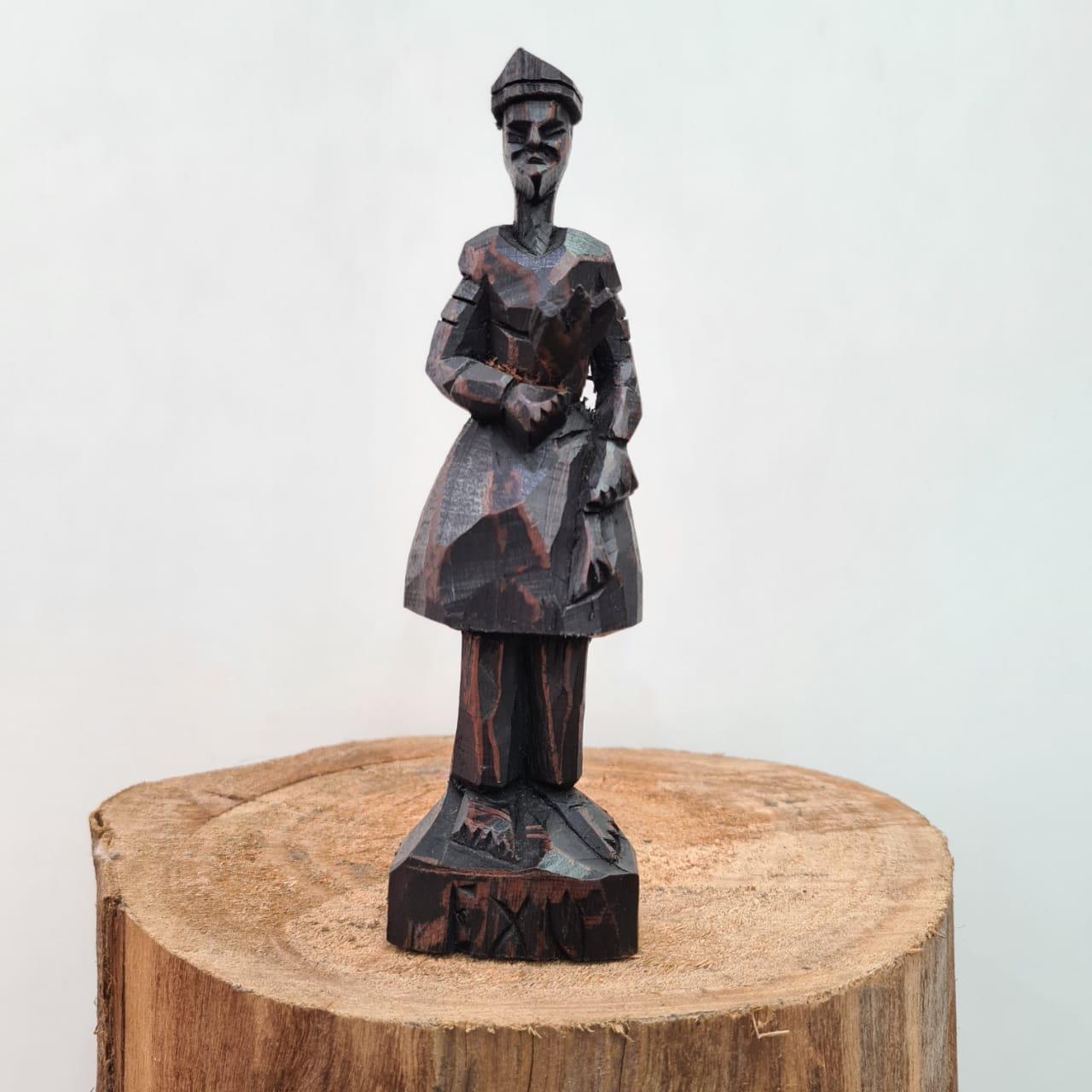 - Imagem em madeira talhada, aproximadamente 20cm de altura.