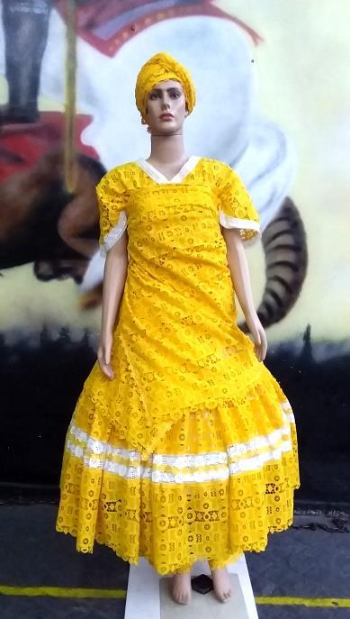 - Conjunto Feminino, 5 pecas em gripir, contendo bata, calca, pano de cabeca, pano da costa e saia, tamanho unico.