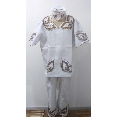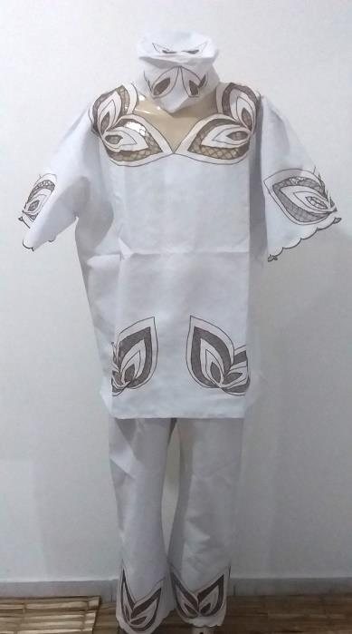 - Conjunto Masculino com 3 pecas, contendo bata, calca e fila.