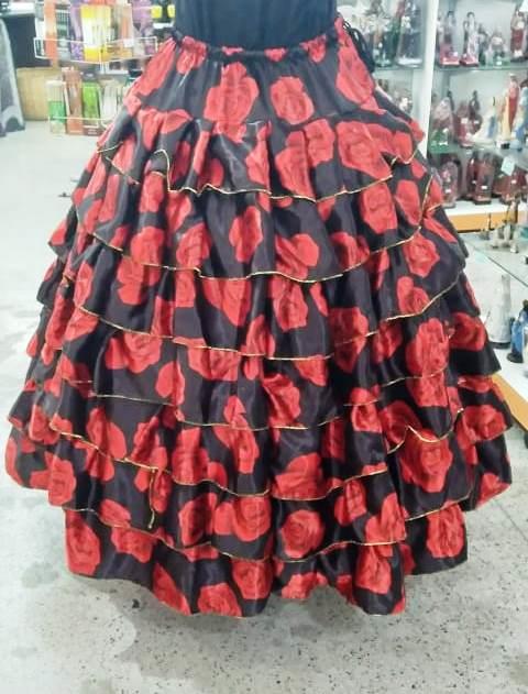 - Saia tamanho unico, tecido cetim com 7 babados.