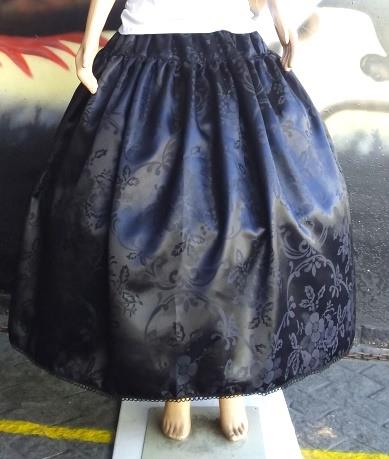 - Saia preta de cetim adamascado, com 3m de roda, tamanho unico.