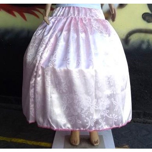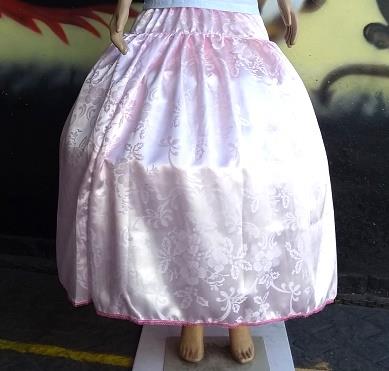 - Saia rosa de cetim adamascado, com 3m de roda, tamanho unico.