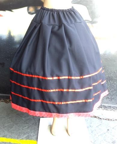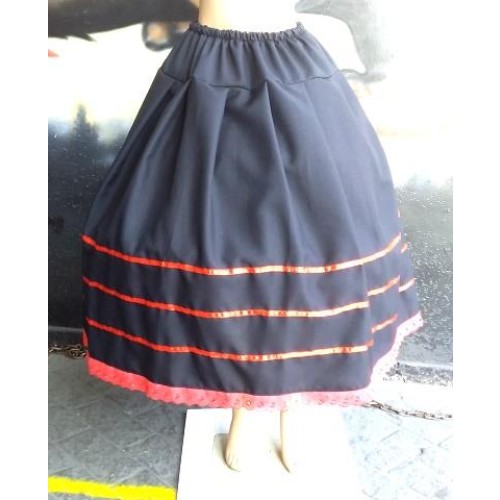 - Saia preta de Oxford com fitas de cetim e aviamentos na barra, com 3m de roda.
